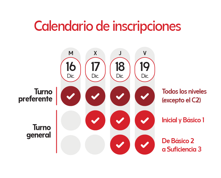 | Del curso Básico 2 a Suficiencia 3 | 17 de diciembre En línea: de 9 a 23:55 h Presencial: consulta el horario de tu centro más cercano |