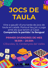 També a Cerdanyola, el Casal popular La Flama, entitat adherida al programa TOTJOC, dedica el primer divendres de cada mes a organitzar una tarda de jocs en català, de 18.30 a 20.30 h. També dedica el primer divendres de cada mes a una sessió de jocs de taula, a partir de les 18 h a l'Hotel d'Entitats de la Plaça Cívica, el Club de Rol de la UAB, entitat adherida a TOTJOC.
