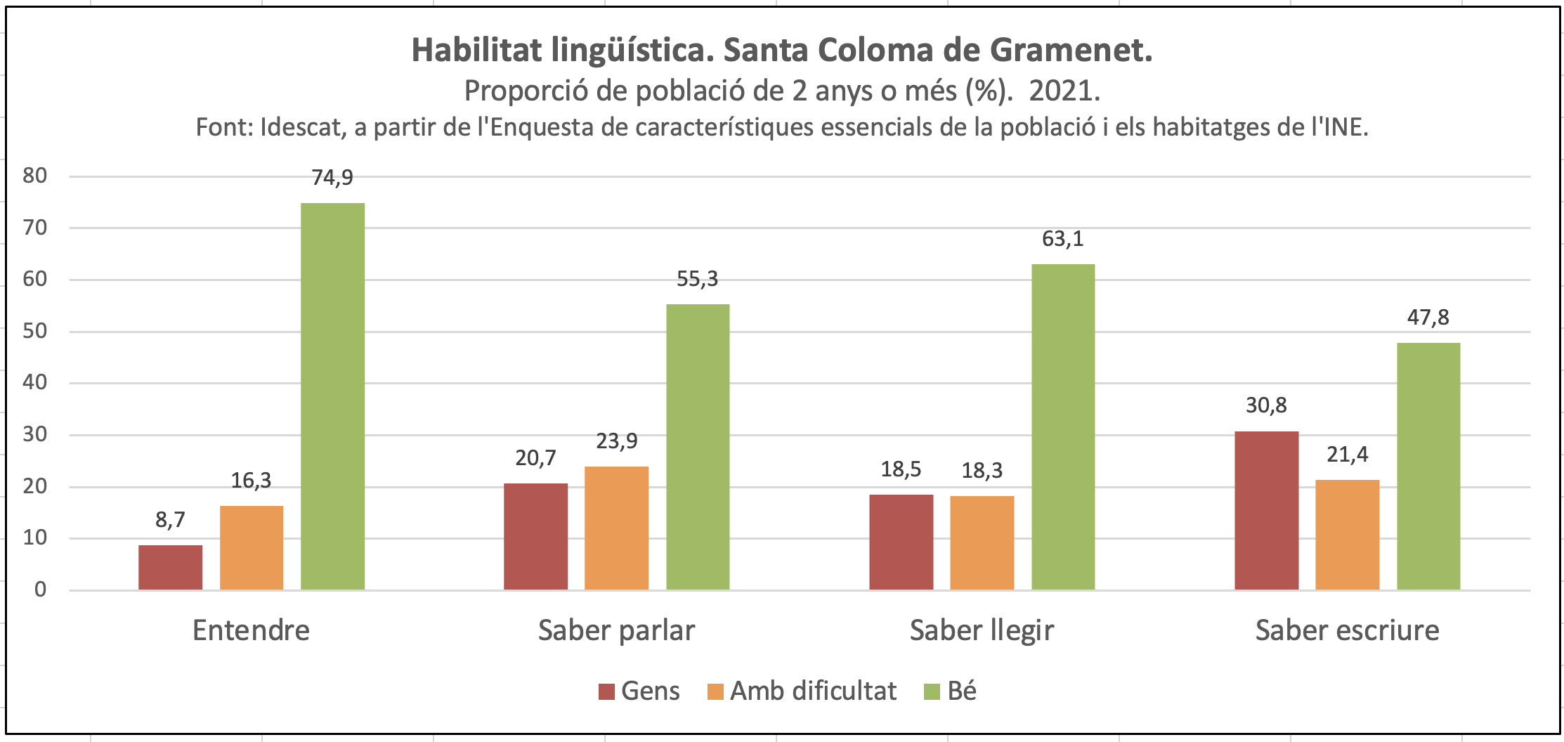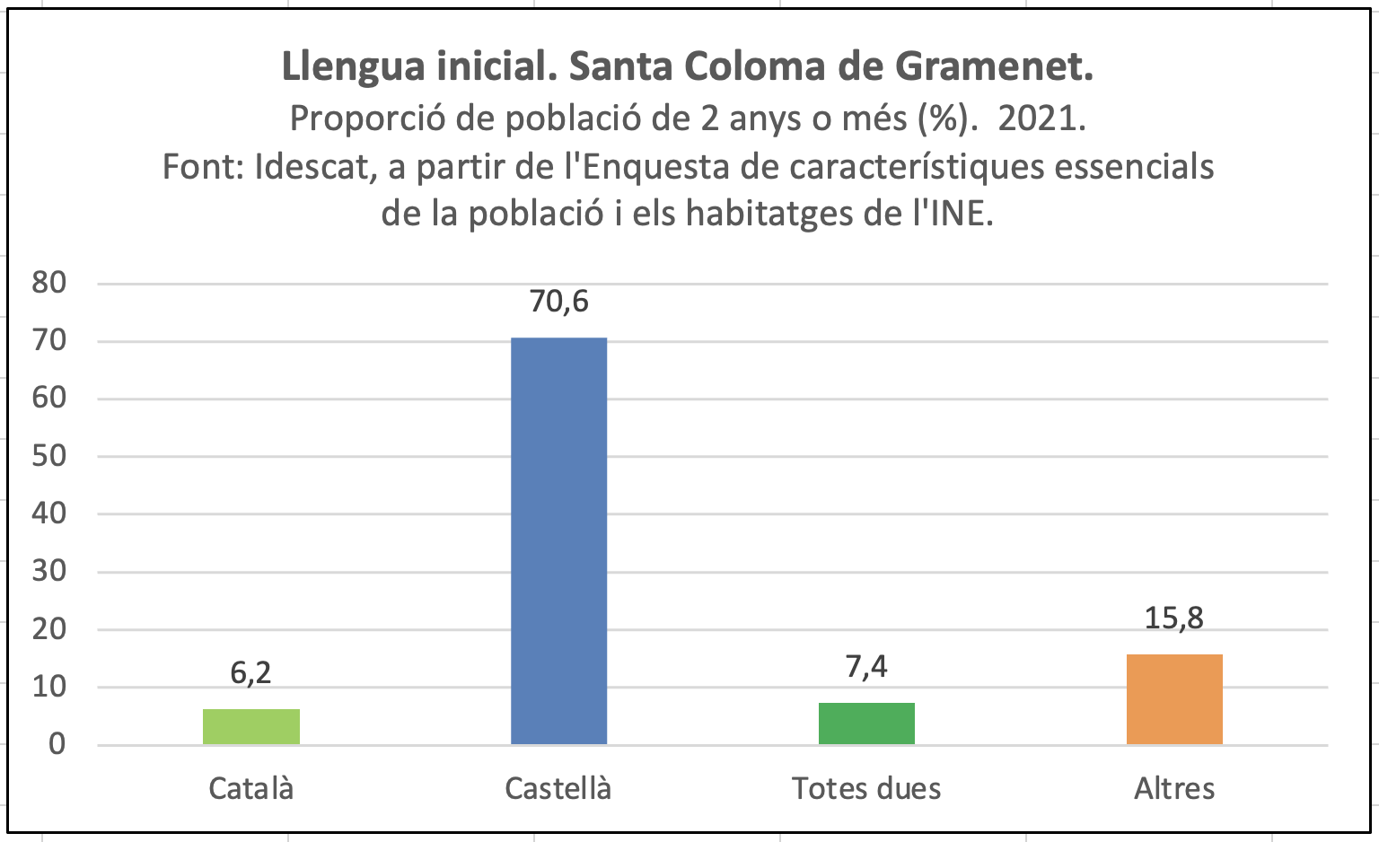 A continuació presentem un conjunt de dades i gràfics que permeten entendre la situació sociolingüística de Santa Coloma: