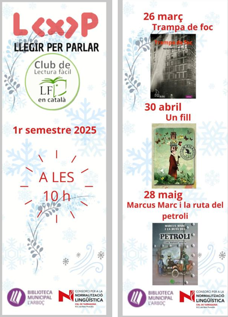Programació del club de lectura que es porta a a terme a la Biblioteca de l’Arboç: