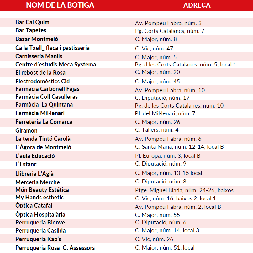- Les butlletes que continguin a partir de 5 respostes correctes entraran al sorteig d'un val de 50 € per gastar entre les botigues que formen part del concurs.