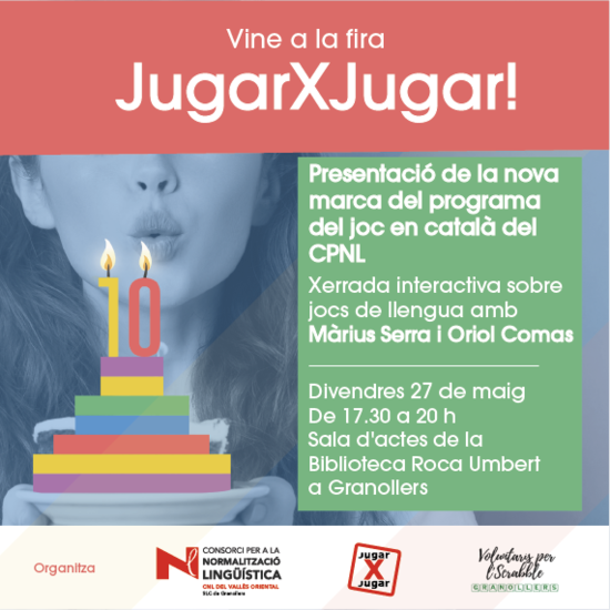 El divendres 27 de maig a les 17.30 h, en el marc de la fira Jugarxjugar de l'Ascensió de Granollers, el Consorci per a la Normalització Lingüística presentarà la nova marca i imatge del programa 'I tu, jugues en català?'.