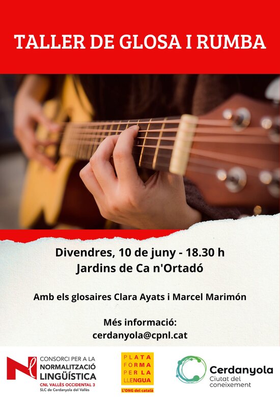 El proper 10 de juny, els alumnes i els participants al Voluntariat per la llengua de Cerdanyola acomiadaran el curs 2021-2022 amb un taller de glosa i rumba, als Jardins de Ca n’Ortadó. El taller serà conduït pels músics Marcel Marimón i Clara Ayats i és obert a tota la població.