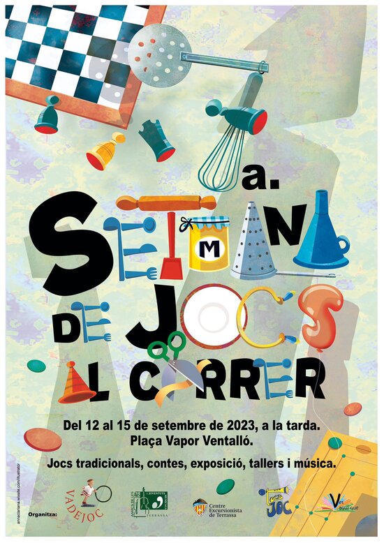 L'associació Terrassenca de Jocs - Vadejoc, Amics de les Arts, Centre Excursionista de Terrassa, Tocajocs-Miqui Giménez i Vetaquíque organitzen, durant les tardes de la primera setmana de setembre, aquesta setmana de jocs al carrer amb la bona predisposició de voluntaris i un gran enfilall d'entitats terrassenques que hi donen suport.
