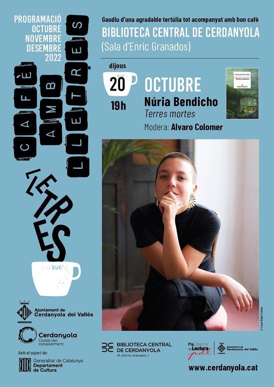 El dijous 20 d’octubre a les 19 h tindrà lloc una nova edició del Cafè amb lletres, dedicada a la novel·la Terres mortes (Anagrama, 2021), de l'escriptora Núria Bendicho.