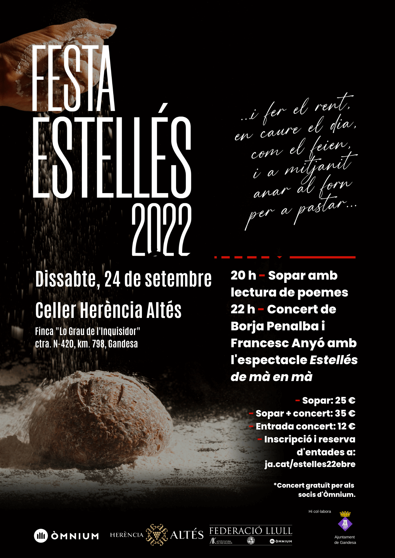 Sopar i recital poètic al celler Herència Altés de Gandesa. Cal inscripció prèvia a ja.cat/estelles22ebre