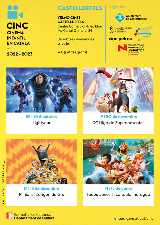 El mes d’octubre es projectarà Lightyear a Cine Yelmo Castelldefels dins el Cicle de Cinema Infantil en Català. Les projeccions tindran lloc el dissabte 22 d’octubre i diumenge 23 a les 16 h.