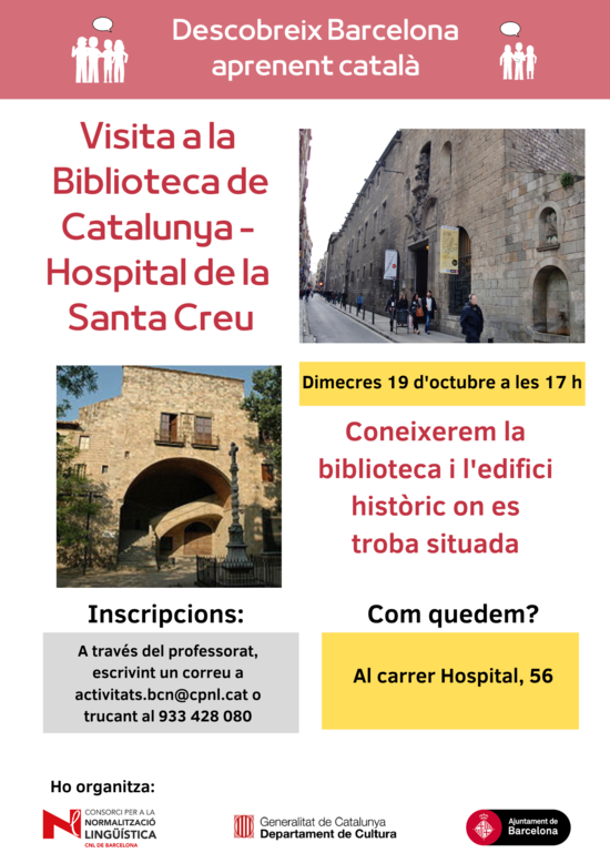 Per inscriure't a l'activitat, cal escriure un missatge a activitats.bcn(ELIMINAR)@cpnl.cat o trucar al 933 428 080.