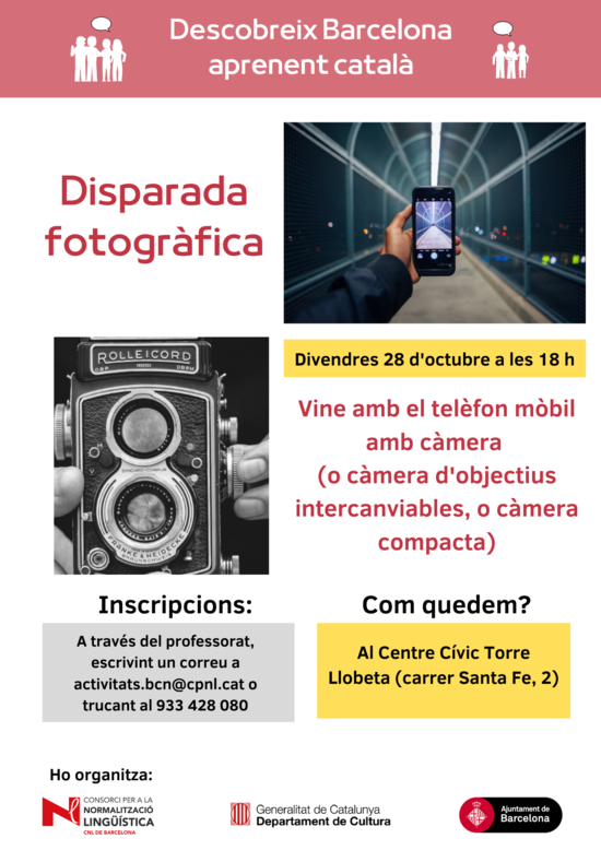 Per inscriure't a l'activitat, cal escriure un missatge a activitats.bcn(ELIMINAR)@cpnl.cat o trucar al 933 428 080.