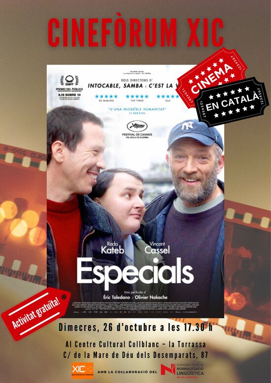 El dimecres 26 d’octubre es reprèn el Cinefòrum XIC. Es tracta d’una activitat organitzada per la Xarxa d'Intercanvi de Coneixements (XIC) en col·laboració amb el CNL de l'Hospitalet. En aquesta ocasió la pel·lícula que es projectarà serà Especials. L'entrada és gratuïta i oberta a tothom.