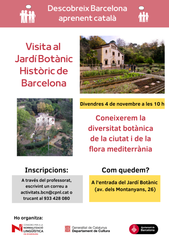 Per inscriure't a l'activitat, cal escriure un missatge a activitats.bcn(ELIMINAR)@cpnl.cat o trucar al 933 428 080.