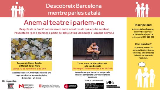 Per inscriure't a l'activitat, cal escriure un missatge a activitats.bcn(ELIMINAR)@cpnl.cat o trucar al 933 428 080.
