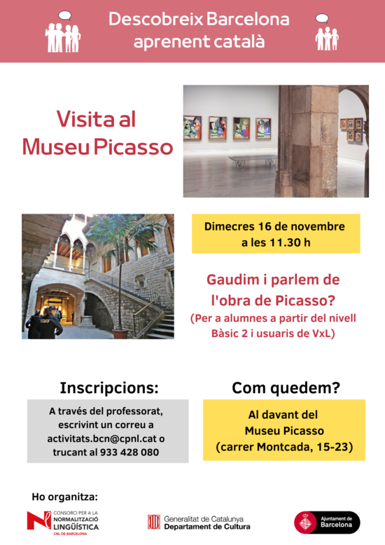Per inscriure't a l'activitat, cal escriure un missatge a activitats.bcn(ELIMINAR)@cpnl.cat o trucar al 933 428 080.