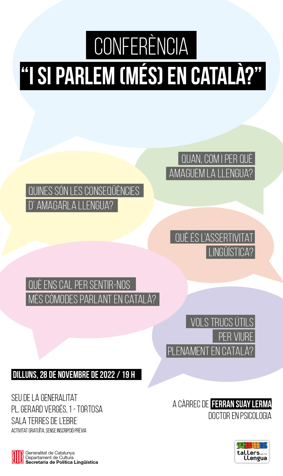 La xerrada pretén fer reflexionar sobre els hàbits lingüístics, mostrar com aquests hàbits afecten la salut del català i donar eines per fer un canvi d'hàbits que permeti viure plenament en català el nostre dia a dia.
