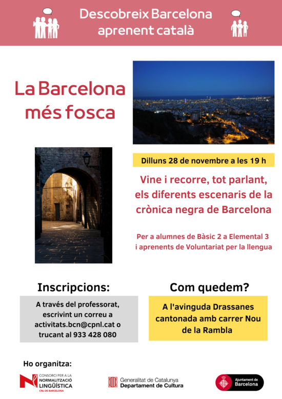 Per inscriure't a l'activitat, cal escriure un missatge a activitats.bcn(ELIMINAR)@cpnl.cat o trucar al 933 428 080.