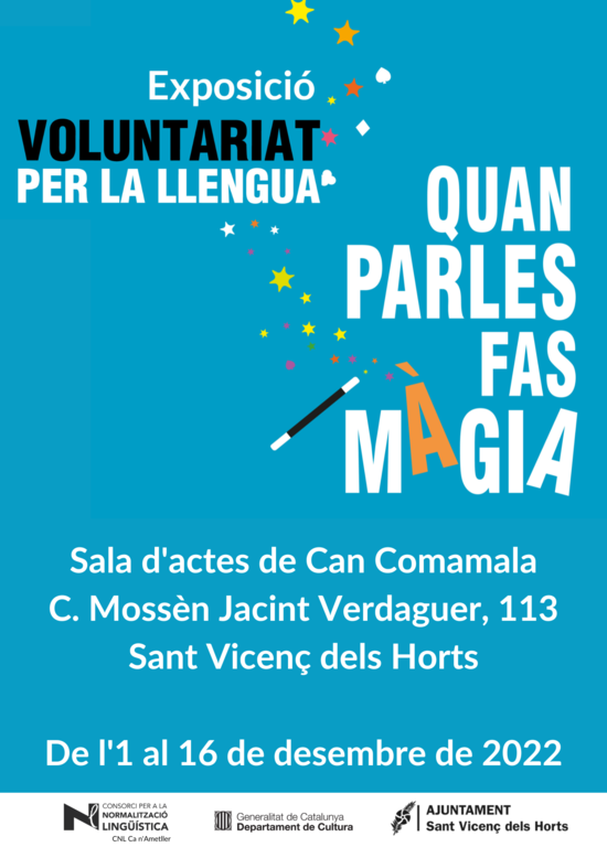 Per commemorar el Dia Internacional del Voluntariat (el 5 de desembre), el Servei Local de Català de Sant Vicenç dels Horts inaugura l'exposició del Voluntariat per la llengua "Quan parles fas màgia" amb la presència del director del Centre de Normalització Lingüística Ca n'Ametller, Marc Piera, i de l'alcalde de Sant Vicenç dels Horts, Miguel Comino.