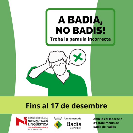 El dimecres 21 de desembre, a les 13.30 h, tindrà lloc l'acte de lliurament dels premis del concurs lingüístic A Badia, no badis! a la Sala de Plens de l'Ajuntament de Badia del Vallès.