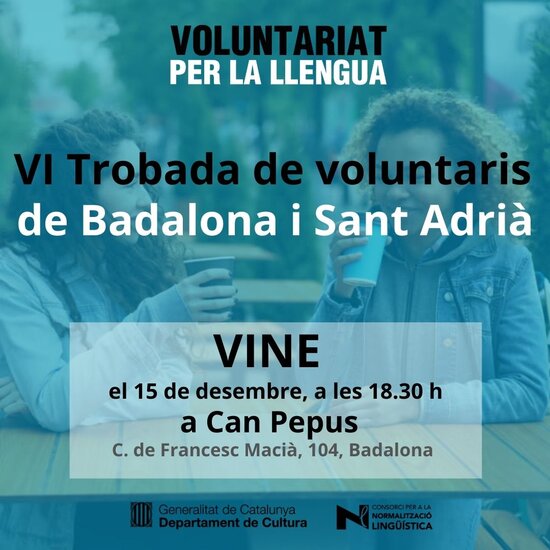 El dijous 15 de desembre, a les 18.30 h, hi haurà una trobada de voluntaris a Can Pepus. Aquesta activitat s’emmarca en el Dia Internacional del Voluntariat.