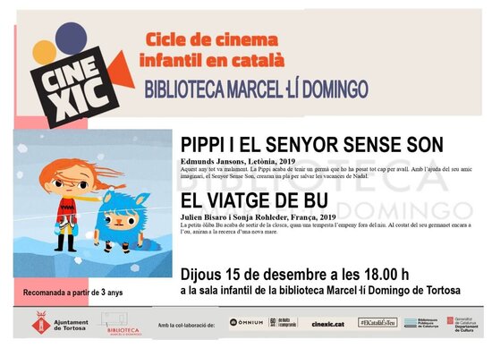 'Pippi i el senyor sense son' i ‘El viatge de Bu’ es projectaran dijous 15 de desembre, a les 18.00 h, a la Biblioteca Marcel·lí Domingo de Tortosa.
