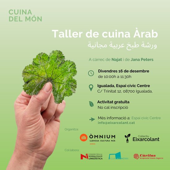 Taller per aprendre algun plat típic àrab i per practicar el català amb les cuineres Najat Ghani i Jana Peters.