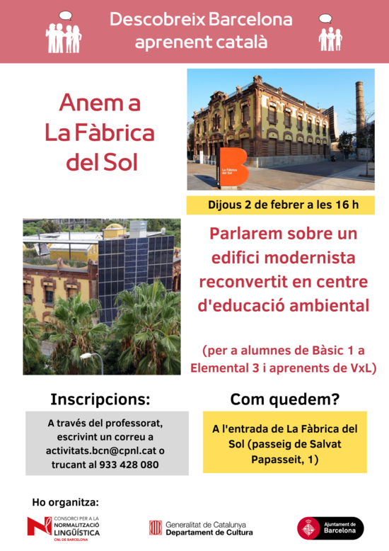 Per inscriure't a l'activitat, cal escriure un missatge a activitats.bcn(ELIMINAR)@cpnl.cat o trucar al 933 428 080.