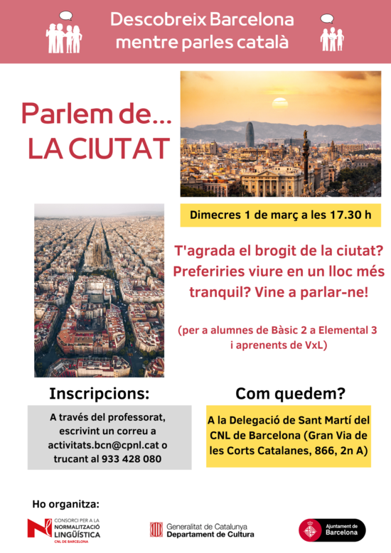 Per inscriure't a l'activitat, cal escriure un missatge a activitats.bcn(ELIMINAR)@cpnl.cat o trucar al 933 428 080.