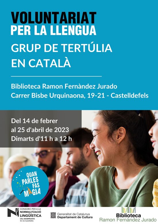 El 14 de febrer començarà un grup de tertúlia en català organitzat pel Servei Local de Català i la Biblioteca Ramon Fernàndez Jurado. El grup, que estarà conduït per una voluntària del Voluntariat per la llengua, està adreçat a persones que tenen coneixements bàsics de català i volen adquirir fluïdesa a l'hora de parlar-lo.