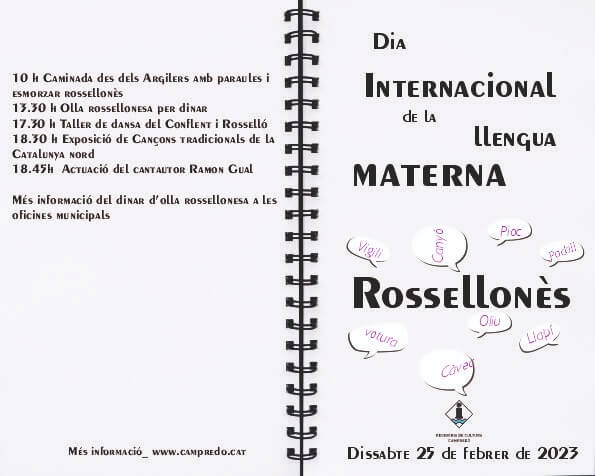 Amb motiu del Dia Internacional de la Llengua Materna, dissabte 25 de febrer, hi ha programades diverses activitats a Campredó relacionades amb el rossellonès.