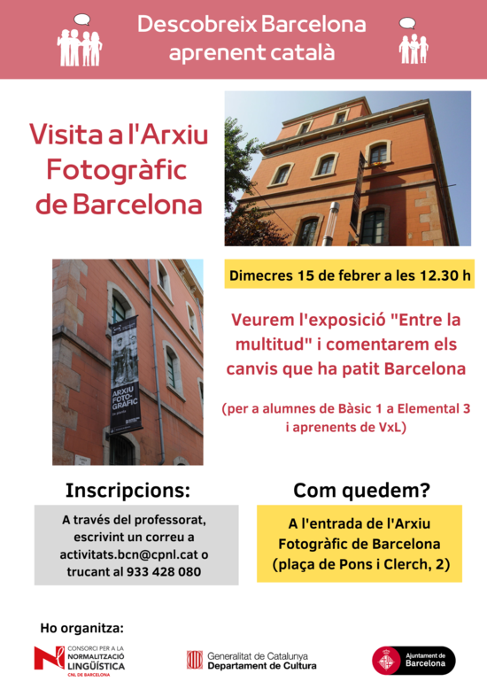 Per inscriure't a l'activitat, cal escriure un missatge a activitats.bcn(ELIMINAR)@cpnl.cat o trucar al 933 428 080.