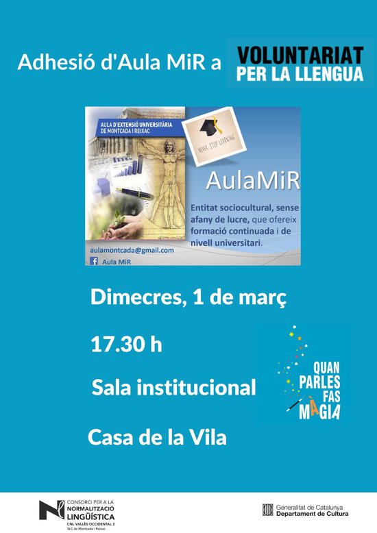 Aula MiR, que té per objectiu oferir formació continuada i de nivell universitari a persones adultes amb inquietuds culturals, s'ha adherit recentment al programa Voluntariat per la llengua.