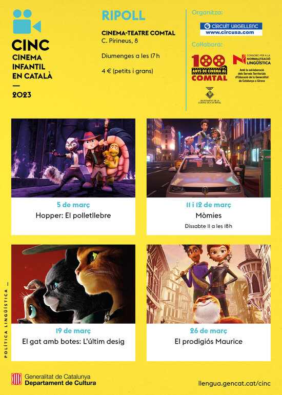 El Cicle de Cinema Infantil en Català (CINC) projectarà 4 pel·lícules a Ripoll a partir del 5 de març.