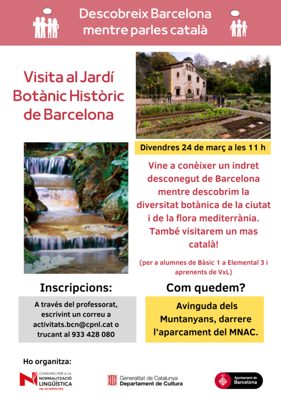 Per inscriure't a l'activitat, cal escriure un missatge a activitats.bcn(ELIMINAR)@cpnl.cat o trucar al 933 428 080.