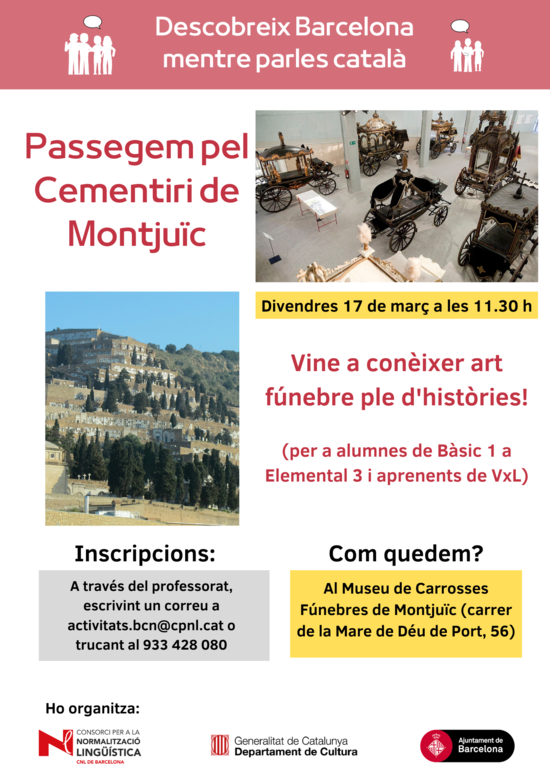 Per inscriure't a l'activitat, cal escriure un missatge a activitats.bcn(ELIMINAR)@cpnl.cat o trucar al 933 428 080.
