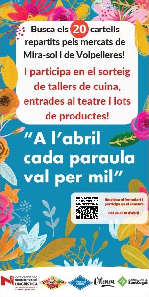 Als mercats de Mira-sol i Volpelleres hi haurà repartits fins a 20 enigmes lingüístics en cartells amb un codi QR perquè tots els participants responguin com més preguntes millor. El termini per participar-hi és tota la setmana posterior a Sant Jordi i se sortejarà, entre tots els participants que enviïn respostes correctes i a cada mercat: un lot de productes, unes entrades al teatre i un taller de cuina.
