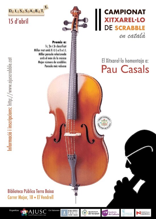 L'Oficina de Català del Vendrell col·labora en la difusió del II Campionat Xitxarel·lo de Scrabble en català. Diversos premis. Centrat en la figura de Pau Casals. Més informació i inscripcions: www.ajuscrabble.cat.