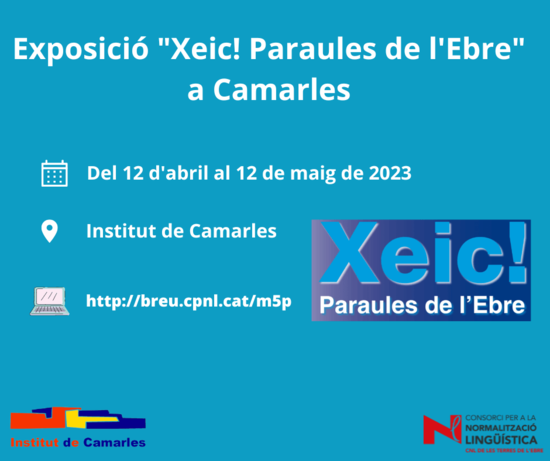 "Xeic! Paraules de l'Ebre" estarà exposada del 12 d’abril al 12 de maig a l’Institut de Camarles. És una mostra que recull una trentena de paraules d'ús habitual en la parla del territori ebrenc.