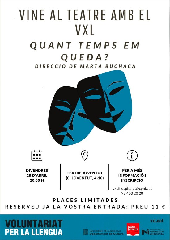 Divendres, dia 28 d’abril, a les 20 h, al Teatre Joventut assistirem a la representació de l'obra Quant temps em queda?.