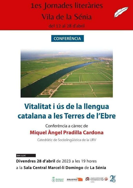 Divendres 28 d'abril, a les 19.00 h, a la Sala Central Marcel·lí Domingo de la Sénia, tindrà lloc la conferència "Vitalitat i ús de la llengua catalana a les Terres de l'Ebre", a càrrec de Miquel Ángel Pradilla.