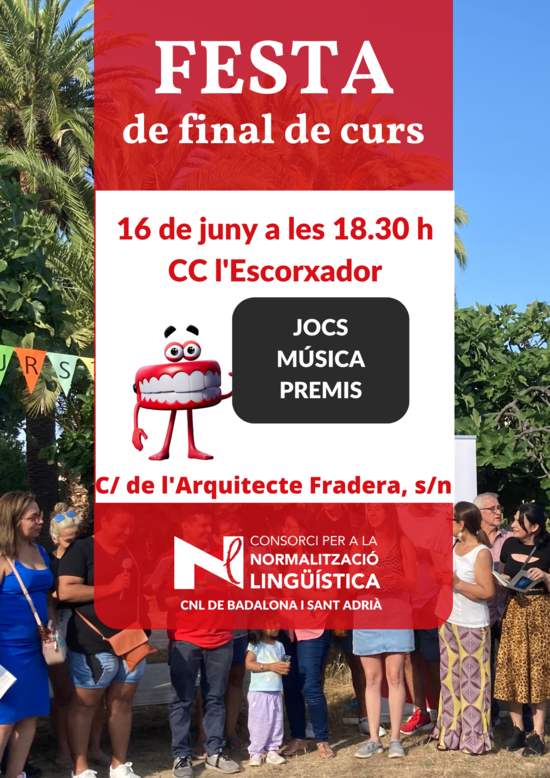 La comunitat del CNL de Badalona i Sant Adrià celebrarem el final del curs 2022-2023 al CC l'Escorxador de Badalona. La festa començarà a les 18.30 i s'allargarà fins a, aproximadament, les 20.30.
