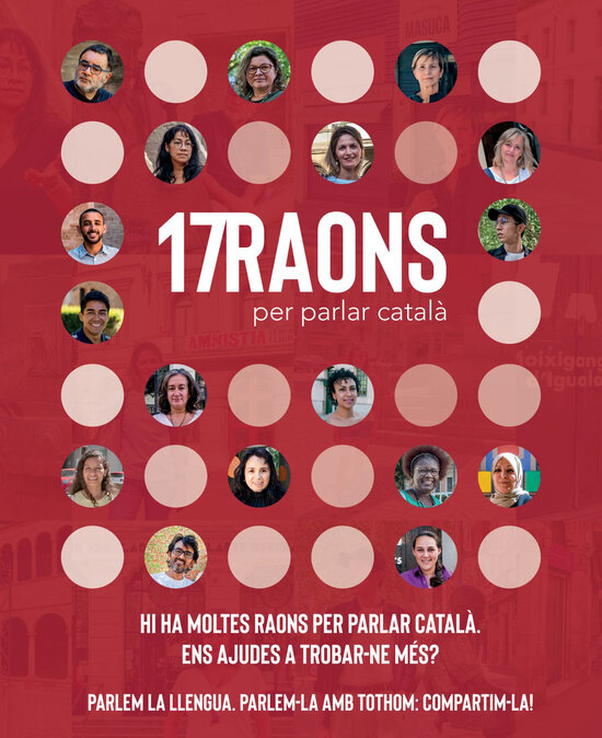Hi ha moltes raons per parlar català. L'exposició fotogràfica "17 raons per parlar català" mostra disset testimonis units per l'amor i el respecte cap a la terra d'acollida i cap a una ciutat: Igualada. Tots ells pertanyen a diferents àmbits de la societat i han adoptat el català com a llengua de referència, tot i que van néixer fora de Catalunya.