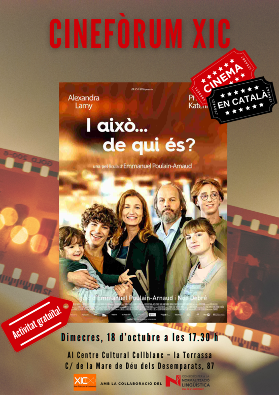 El dimecres 18 d’octubre, nova sessió del Cinefòrum XIC. Es tracta d’una activitat organitzada per la Xarxa d'Intercanvi de Coneixements (XIC) en col·laboració amb el CNL de l'Hospitalet. En aquesta ocasió la pel·lícula que es projectarà serà I això... de qui és?.