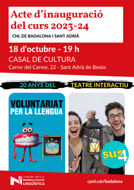 El dia 18 d'octubre, a les 19 h, farem l'acte d'inauguració del curs 2023-2024 del CNL de Badalona i Sant Adrià.