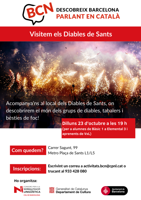 Acompanya'ns al local dels Diables de Sants, on descobrirem el món dels grups de diables, tabalers i bèsties de foc!