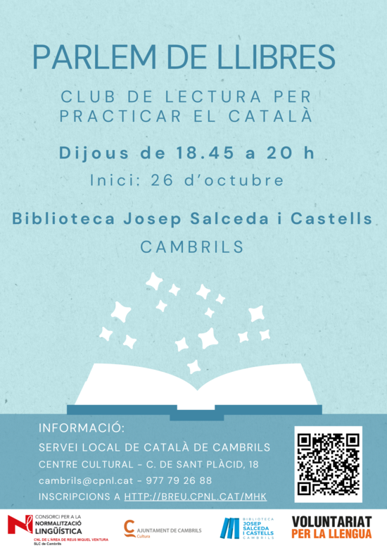 Club de lectura per practicar el català, els dijous de 18.45 a 20 h, a la Biblioteca Josep Salceda i Castells (c. d'Alfons I el Cast, 2, Cambrils)