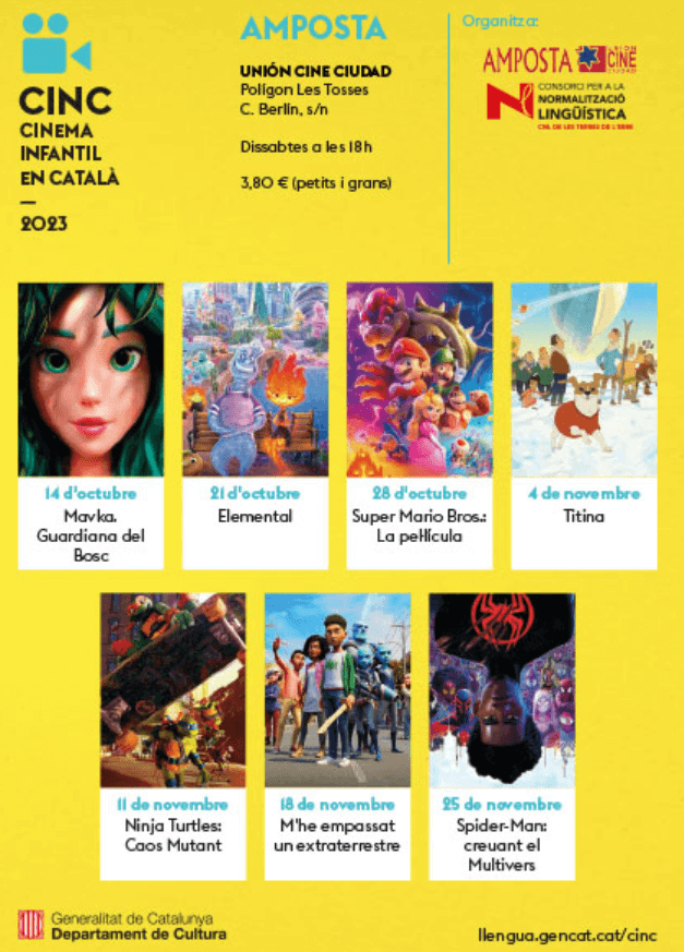 A partir del 14 d’octubre es projectaran durant set dissabtes consecutius pel·lícules infantils, doblades al català, a les sales del cinema d’Amposta: