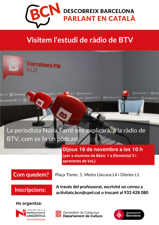 Per inscriure't a l'activitat, cal escriure un missatge a activitats.bcn(ELIMINAR)@cpnl.cat o trucar al 933 428 080.