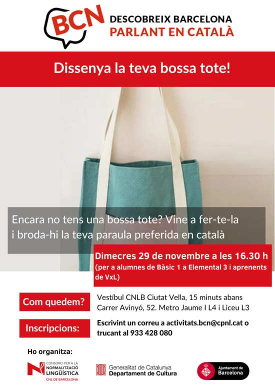 Per inscriure't a l'activitat, cal escriure un missatge a activitats.bcn(ELIMINAR)@cpnl.cat o trucar al 933 428 080.