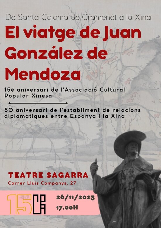 Amb motiu del 15è aniversari de l'Associació Cultural Popular Xinesa, s'organitza una obra de teatre al Teatre Sagarra. Escrita i dirigida per Qiang Chen, De Santa Coloma a la Xina, el viatge de Juan González de Mendoza. Es tracta d'una peça d'arts escèniques intercultural única, on hi participa el CNL L'Heura, l'Excèntrica, Laietans de Gramenet, Grups de danses Qimei, Hanfu Feiyu, Nataraja Dance, 6th element i IN studio, entre d'altres.