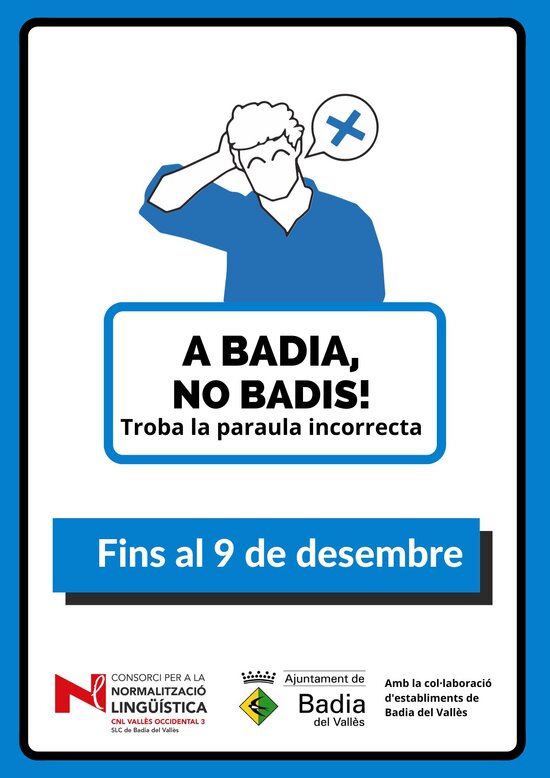 El proper 13 de desembre, a les 13 h, es lliuraran els premis del concurs lingüístic als comerços A Badia, no badis, que s’ha portat a terme del 20 de novembre al 9 de desembre.