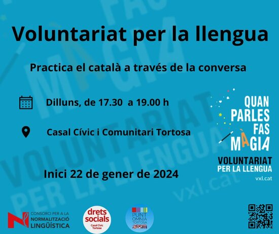 El dia 22 de gener comença un grup de conversa i d’activitats per fomentar l’ús de la llengua catalana al Casal Cívic i Comunitari Tortosa. L'activitat està adreçada als familiars dels usuaris del Casal. Es realitzarà els dilluns laborables, de 17.30 a 19.00 h.